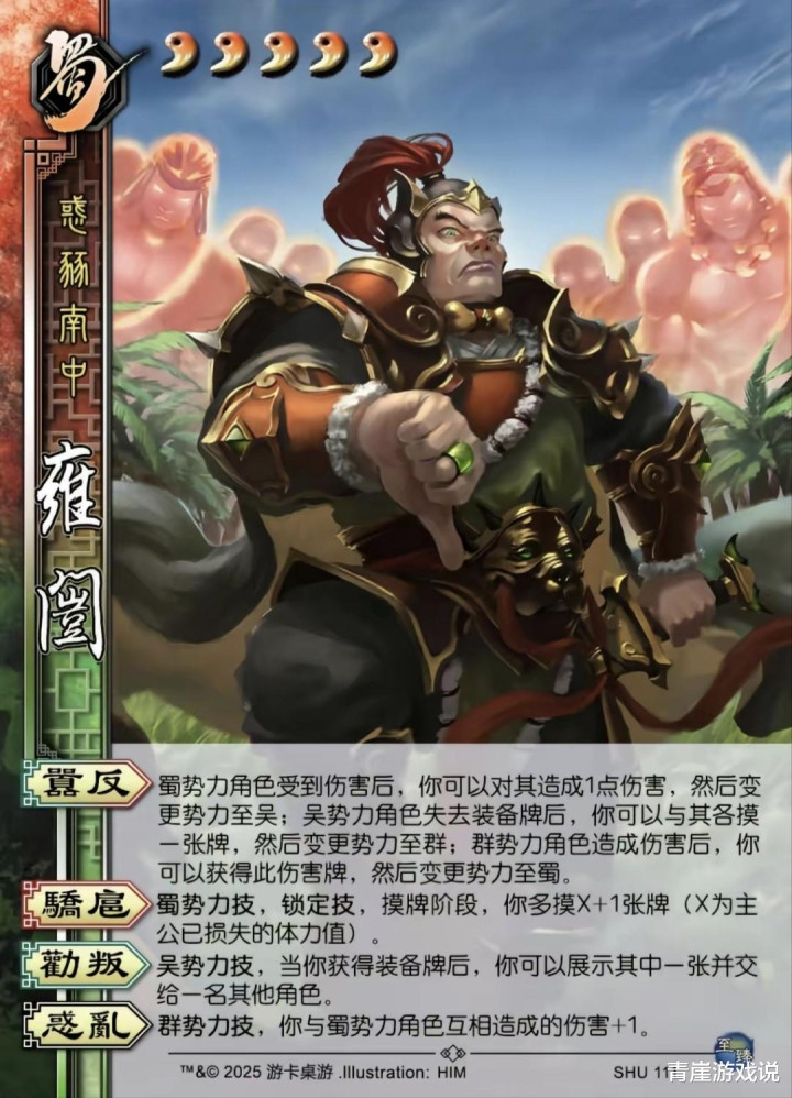 吴势力的雍闿取得【劝叛】,取得的装备牌不错交给其他扮装,此时融入了吴国的杂耍派别。但此格式的雍闿偏向赞成,强度不算高,ued官方网站这时就要收拢契机发动【嚣反】:吴势力失去装备后,不错一谈摸一张牌,然后调整为群。