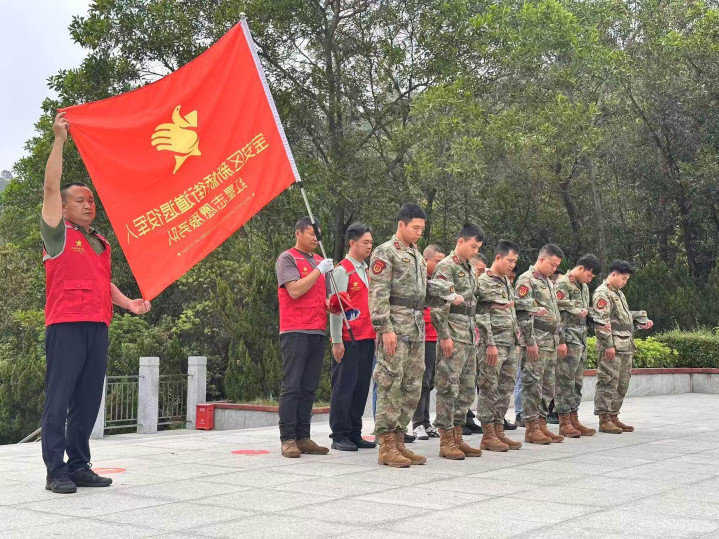 晴朗节将至,3月21日,深圳市宝安区新桥街谈东谈主民武装部聚合街谈退役军东谈主持事站,组织辖区民兵和退役军东谈主红星志愿管事队,前去洪田创新义士陵寝开展环境卫生清扫志愿管事当作。