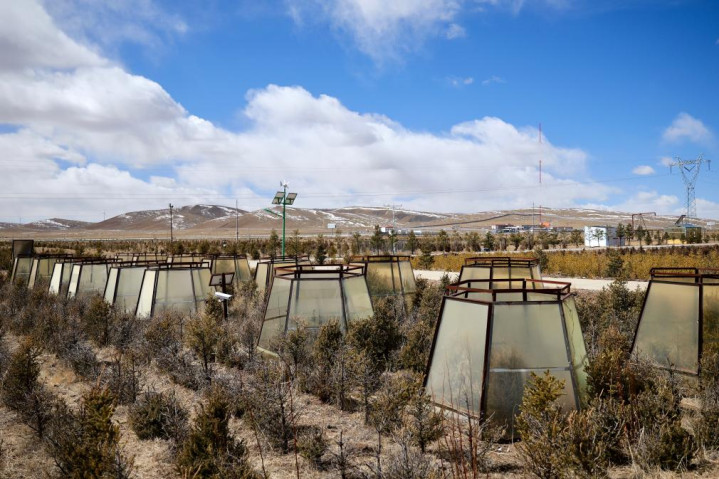 西藏那曲地区城镇植树要津时刻研发与绿化现象示范神志示范基地中的顶开式滤光温室。新华社记者周昱龙摄