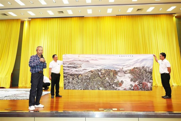 典礼上,邹才干向现场嘉宾展示了捐赠的山水画作品。这些画作题材涵盖了三亚最具代表性的当然和东谈主文景不雅,纯真展现了三亚私有的城市与生态之好意思。这次无偿捐赠,不仅为党校新居增添了浓厚的文化底蕴,更彰显了老艺术家情系三亚、撑握党校管事的诚实情感。