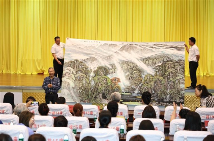 3月20日上昼,中国著明热带雨林画家邹才干巨幅中国画作品布置典礼在三亚市委党校举行。