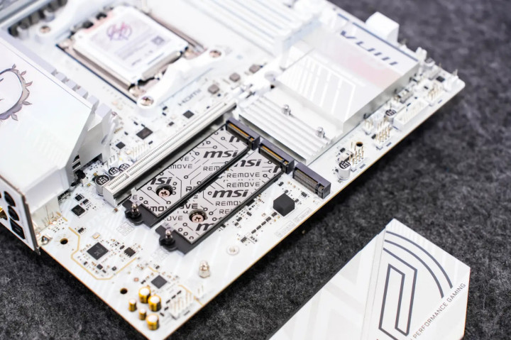 主板领有4个M.2插槽,其中2个是CPU直连的PCIe 5.0×4规格插槽,1个是芯片组提供的PCIe 4.0×4规格插槽,还有1个滋扰在主板后头,正面3个M.2插槽都配备了微星第二代免用具装置的M.2冰霜散热装甲,其中2个PCIe 5.0插槽还搭配了双面高导热散热垫,概况灵验造谣SSD的运转温度,幸免因过热导致的性能下落,不管是装置1TB SSD已经大容量机械硬盘,都能疲塌舒服。此外,主板还配备1条原生PCIe 5.0 x16插槽,给与金属加固打算,概况稳定复旧微星×芙莉莲联名显卡,防患显卡过重导致插槽变形,同期还能全速证据显卡的PCIe 5.0性能,让显卡的“魔法力量”充分开释。