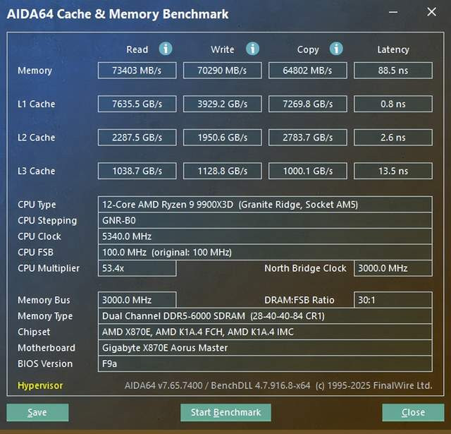 内存读取速率为 73403MB/s;