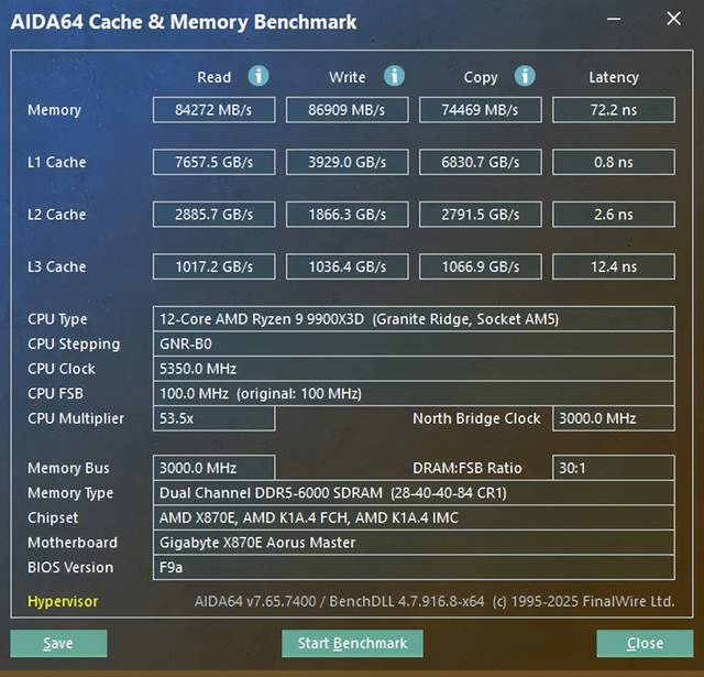 内存读取速率为 84272MB/s;