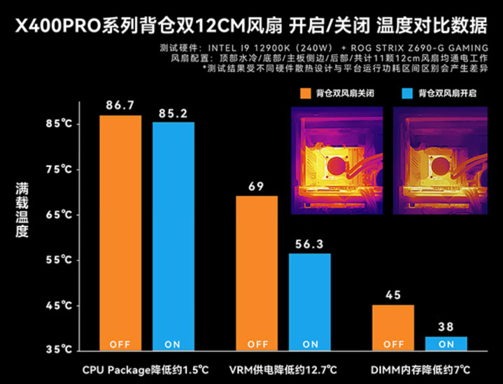 径直对着主板后头的MOSFET 供电模块、内存后头、CPU 插座区域送风,实测烤机中可让VRM供电温度降约12.7℃、内存温度降约7℃,权臣缓解高功耗下的供电过热,对高负载平台降温与褂讪性进步昭着。