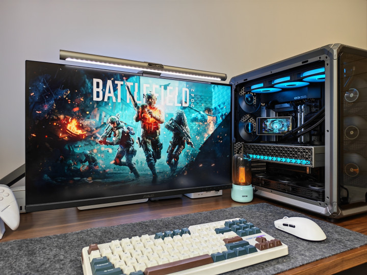 我这套配置莫得很夸张炫酷的灯光,但水冷散热器、和显卡灯带透出的灯光恰到平正,透光率极高的玻璃面板不错从多个角度毫无禁绝地玩赏里面的总共硬件。它告捷地将电脑主机从一件藏在桌下的“器具”回荡为了摆在桌面上“艺术品”、称心了玩家对个性化、视觉享受深层需求。