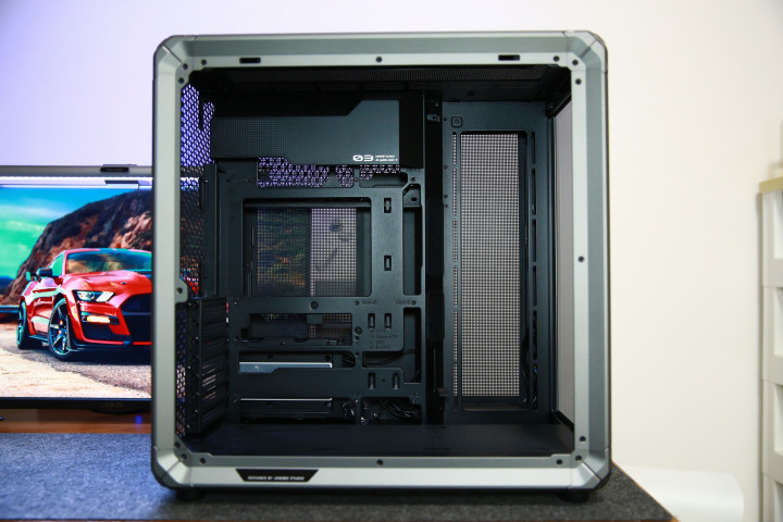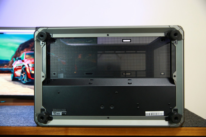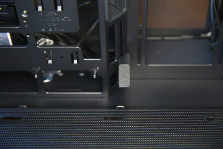 机箱底部也有大面积MESH冲孔板,进一步增强了散热智商。