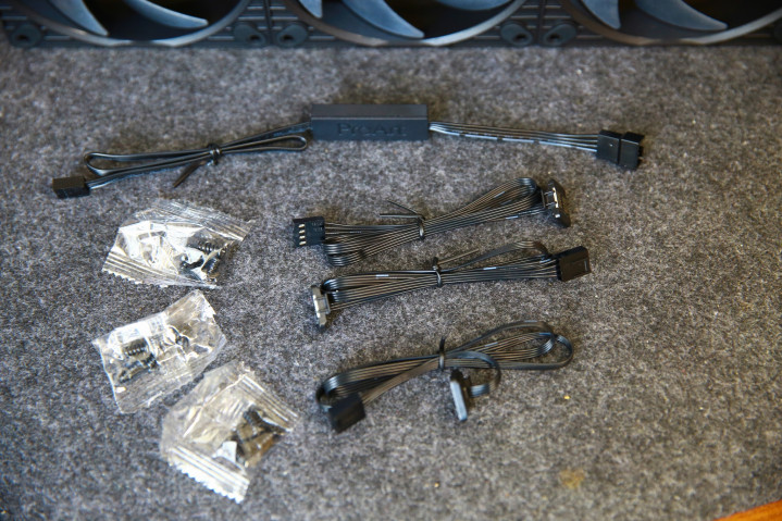 三把电扇禁受菊花链连结,通过非常8pin接口,单接口即可惩处供电与灯光限度,装配浅显。