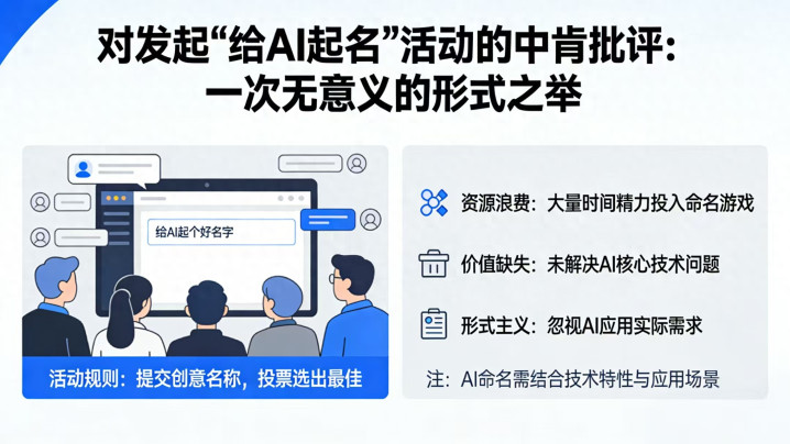近日,某官媒发起为AI征勾通文名的举止激发烧议,在笔者看来,此举并无推行必要,本色上是一场缺少意旨的体式化操作。