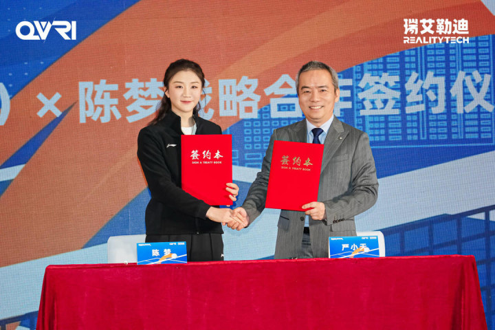 2026年3月20日,国度假造现实调动中心(青岛)(以下简称“国创中心”)与奥运冠军陈梦政策合营签约庆典于青岛假造现实创享中心举行。本次政策合营以“签约为核、礼遇为媒、VR互动为桥、科普为翼”为理念,标记着两边将在VR乒乓球落地诈欺与青少年乒乓球东谈主才拔擢两大中枢规模张开深度合营,激动体育与科技深度会通。