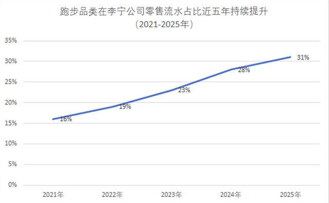 跑步和羽毛球,是李宁2025年最亮眼的两张品类柬帖。跑步活水占比升至31%,成为第一大品类;羽毛球收入增长30%,增速引颈行业。
