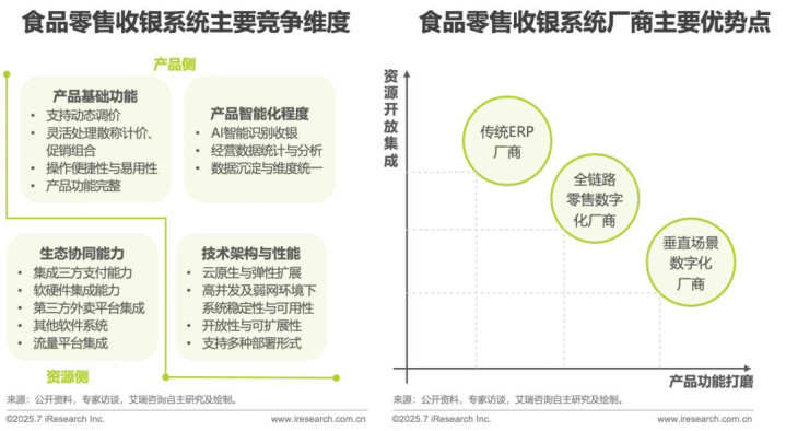 食物零卖收银系统的竞争力核心在于厂商的场景领路深度、居品功能清晰性和业务的生态广度:(1)垂直场景适配才气:居品的场景适配与领路是厂商竞争力的核心壁垒,包括居品易用性、功能遮掩与智能化程度。(2)居品时代性能:通过云原生底座、容器化架构等花样保险收银居品在促销、节沐日等高并发场景下的清晰性与可用性。(3)绽开生态协同:体现厂商对凹凸游资源的整合才气,亦是厂商对食物零卖企业业务全链路数字化的遮掩才气。将来厂商在收银界限的竞争焦点在于全链路数据联通与智能化分析,串联零卖企业各业务场景,终了高效协同与提效。