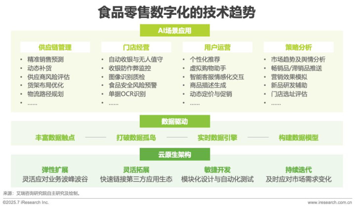 食物零卖数字化厂商将加快构建云、数、智三位一体的时代闭环:1)云原生架构在弹性扩展、无邪拓展、敏捷开导和连接迭代等方面上风突显,为条目业务敏捷、粗略符合商场变化的食物零卖企业提供了强有劲的底层维持;2)买通各业务系统,建立商品、用户和供应链的全链路数据体系,不错匡助客户更正传统的教训运转模式,转向愈加科学的数据运转;3)在AI应用方面,大模子时代的快速发展为AI+零卖提供了新的可能性,将决策式AI与生成式AI融入到供应链照料、门店估量、用户运营、决策扶助等花样中,股东食物零卖的数智化升级。