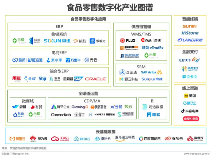 食物零卖供应链数字化厂商把柄业务发展历程可分别为三大类:(1)传统ERP厂商:以财务与进销存模块为核心,依托系统集成上风办事大型食物制造商;(2)抽象供应链厂商:聚焦供应链场景,凭借实体仓储网格及物流资源构建竞争壁垒;(3)零卖数字化厂商:深耕垂直场景,以敏捷迭代与行业Know-How见长。将来三类厂商的场景与行业领路将冉冉加深,互相会通,连接擢升圭臬化才气、实体资源广度与垂直场景深度。以乐檬为例,业务链条从零卖收银系统向中后端蔓延,连接加大在时代研发方面的插足,握住优化和升级现存居品措置决策。