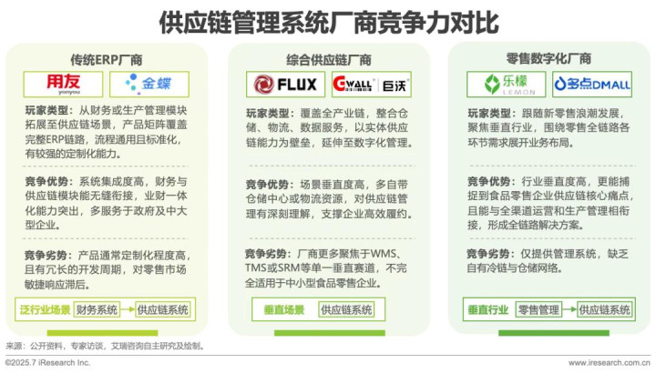 包括传统ERP、抽象供应链和零卖数字化厂商,行业场景垂直度递加