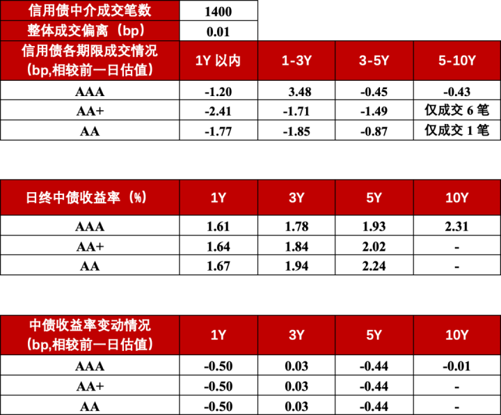 二级方面,当天成交笔数较前一日连续回落,全日悉数成交1400笔,平均估值隔邻成交。1Y内信用债成交485笔,位于一年29%分位,大齐低估值1-2bp隔邻成交,UED体育中国官方网站入口成交中位数1.65%。1-3Y信用债成交612笔,一年40%分位,AAA主体成交为主,买盘主要为基金和银行,中位成交收益率为1.89%。3-5Y信用债交投笔数连续效果回落,位于一年37%分位,成交260余笔,平均低估值0.87bp成交,收益率核心在2.16%隔邻。5Y以上信用债全日成交仅44笔,位于一年10%分位,低估值1bp傍边成交为主。