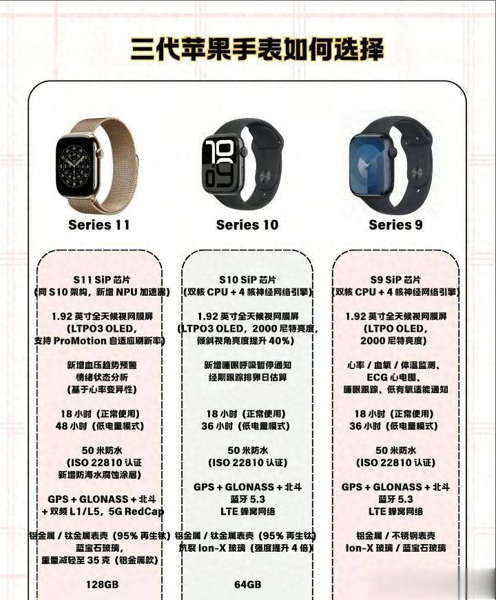 2026年3月21日星期六早晨,智能一稔缔造市集迎来新一轮技艺迭代,苹果公司精采推出Apple Watch Series 11、Series 10与Series 9三款旗舰家具,三者均搭载自研SiP芯片系统,支握50米防水认证,稳妥ISO 22810外洋圭表,面向不同用户需求构建完竣家具矩阵。本文旨在明晰呈现三款机型在硬件树立、功能特质、续航发扬及材质工艺等方面的互异,匡助破钞者作念出感性取舍,同期确保实质严谨准确,无错别字,语句通顺畅通,仅使用逗号与句号四肢标点绚丽,全文向上一千字,不聘用表格阵势,亦不波及具体地舆位置信息。