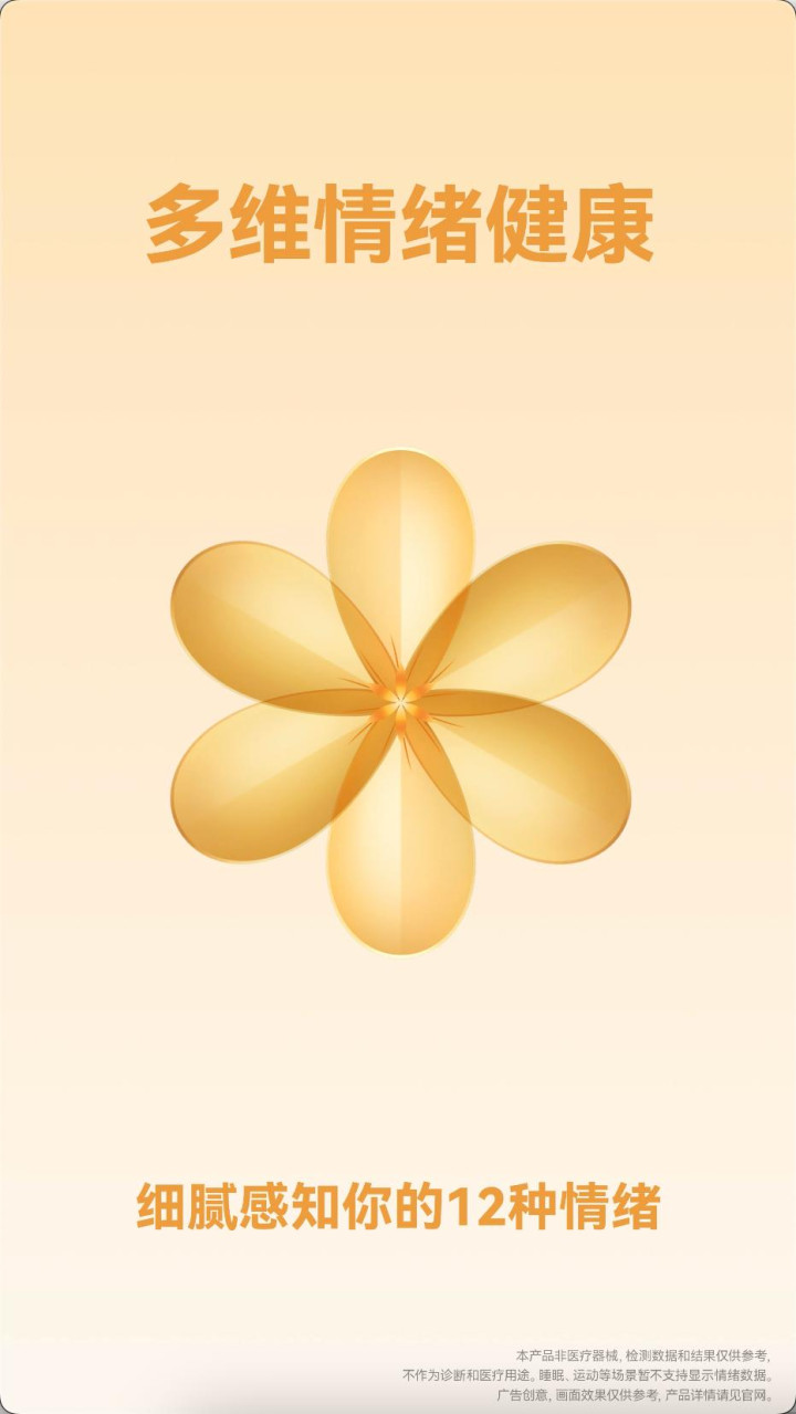 心思健康良好热心:情怀检测功能交融压力数据,情怀状态分类增至 12 种,识别愈加细分。当情怀波动时,用户可通过呼吸考试模式快速平复阵势,呵护心思健康。