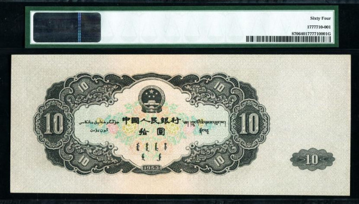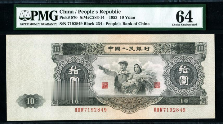 1953年的10元纸币,刊行的数目巧合在5亿张。你听到这个数目可能会以为很是的多,关联词在那时,回收捐躯的很是的多,民间留存的可能不向上5万张,况兼绝大无数皆是畅达旧品。